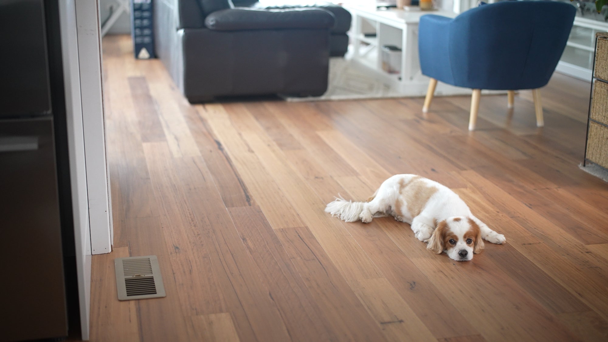 She bid farewell to the outdated pink-tiled floors and opted for our Australian Rustic Blackbutt engineered timber, infusing her home with character and charm. Now a warm and inviting atmosphere that Diane, along with her family of three dogs, absolutely adores.