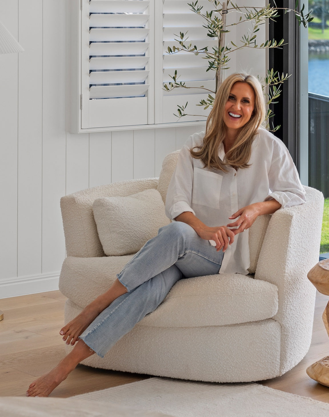 Seeking a relaxed, coastal atmosphere for their home, they decided on a classic Hampton style interior, featuring abundant neutral tones of white, beige, and cream. To achieve this look, Corinne selected Blonde Oak