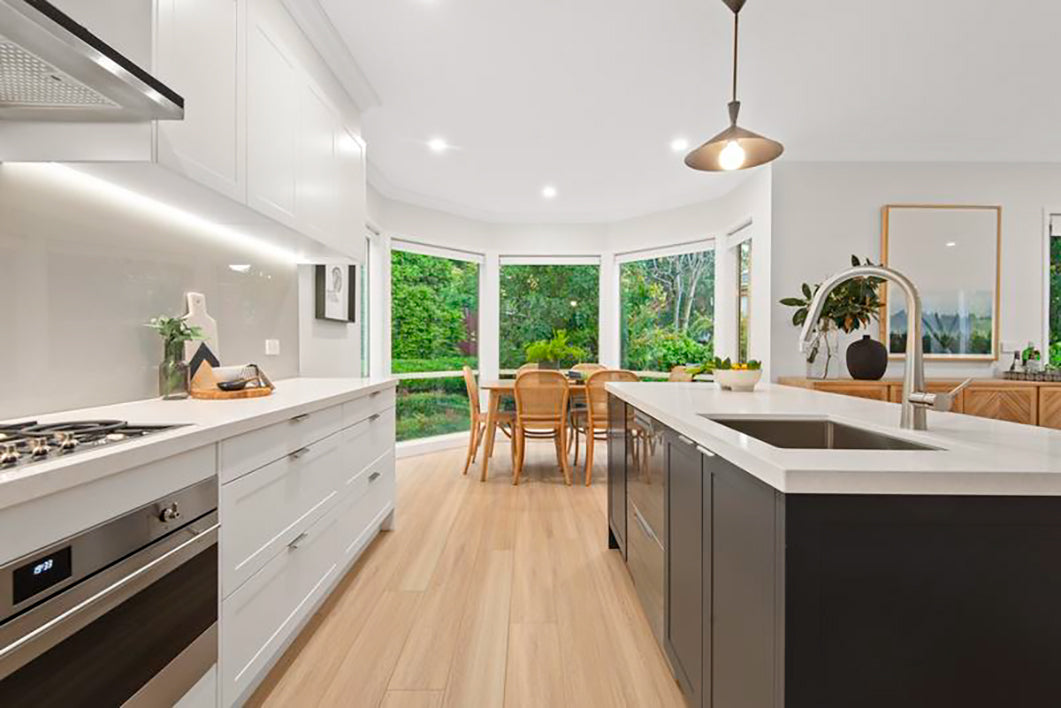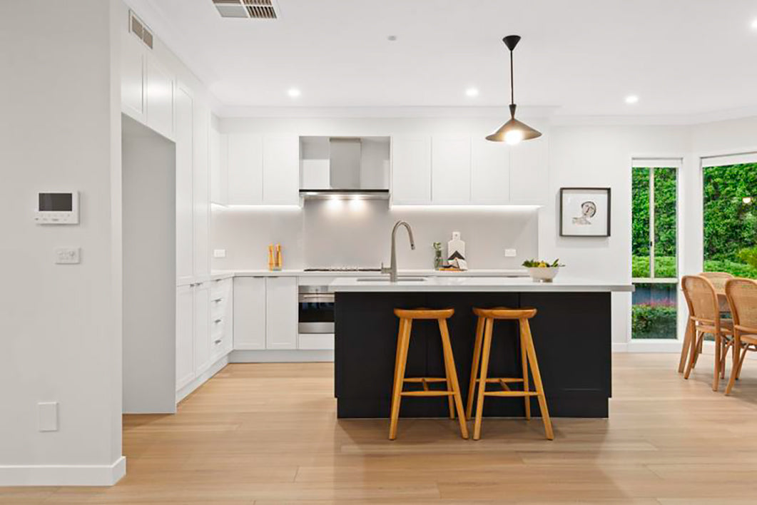 With worn out dark laminate flooring, this home was in desperate need of a makeover. Enter Whitehaven hybrid flooring. With it's warm neutral tones and subtle timber-look grains, Whitehaven hybrid flooring was the perfect choice to give this home the upgrade it needed.